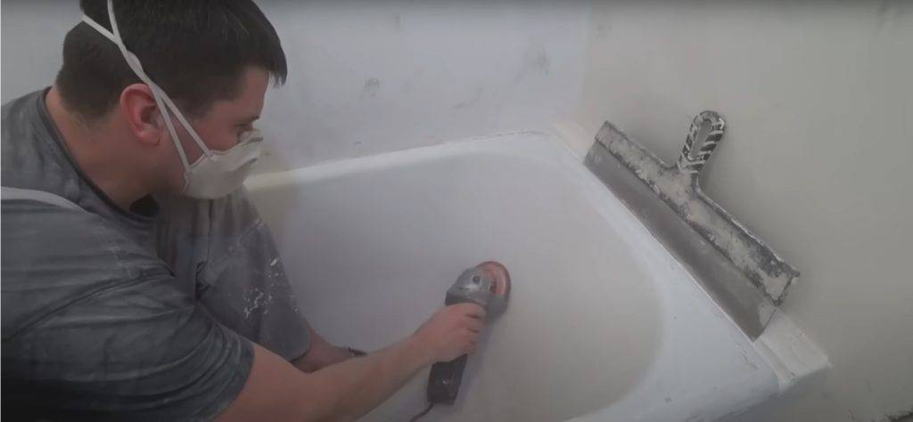Шлифовка. Старая эмаль или акрил полностью снимаются. Используется болгарка и абразивные круги. Важно удалить глянец.